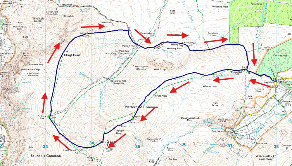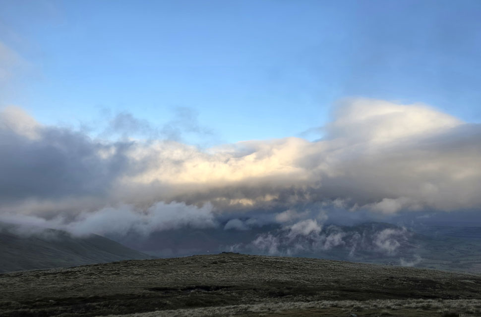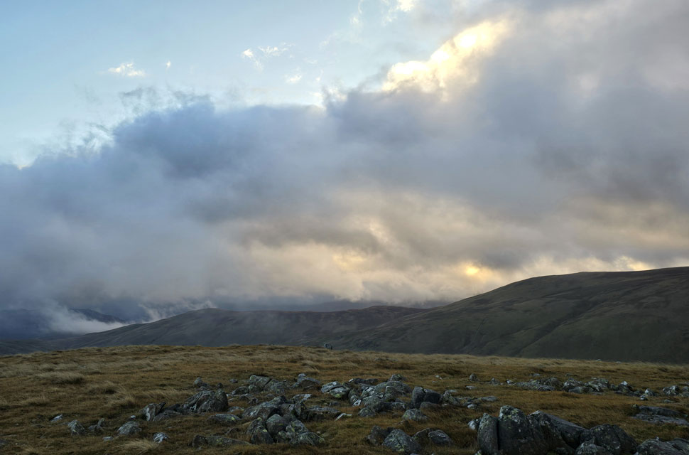 The forecast wasn't looking the best, worse tomorrow and with missing out on the Lakeland fells last weekend I was determined I was going to walk whatever the weather. During the week I'd set my sights on High Raise from Grasmere but Rod emailed and suggestedClough Head from High Row, an area of Lakeland that I last visited back in July 2015; even though I knew we were going to take a soaking I jumped at the chance and arranged to meet Rod at High Row car park at 7:00am. It was still pitch black when I arrived at High Row at 6:50am where I spotted Rod's head torch behind his car half kitted up. I'd reckoned on not needing the head torch with sunrise just around the corner but with extensive cloud cover, nothing was getting through.