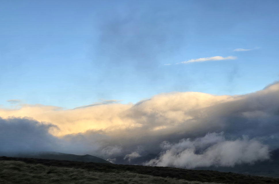 I'd watched an E-mountain biker video on YouTube during the the cloud inversions a couple of weeks back who had set off from this exact spot to climb Helvellyn who, on more than one occasion got stuck and even fell off his bike in the bogs between Groove Beck and the lower slopes of Randerside not helped as he was clipped into his pedals with cleats, and with this in mind I reminded Rod not to forget to add the gaiters, oh boy we're gonna need them I laughed. Accompanied by the sound of a hooting Owl we locked our cars and set off along the Old Coach Road by which time dawn had just broke leaving enough light to see without the head torches. |