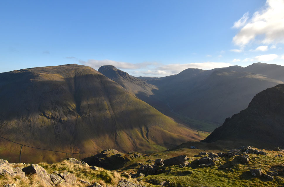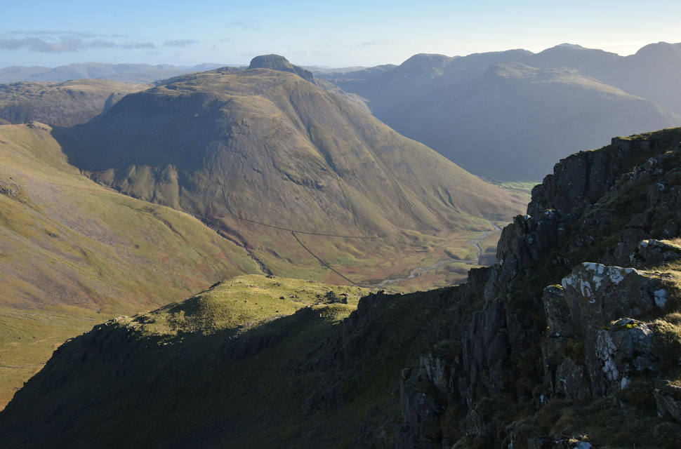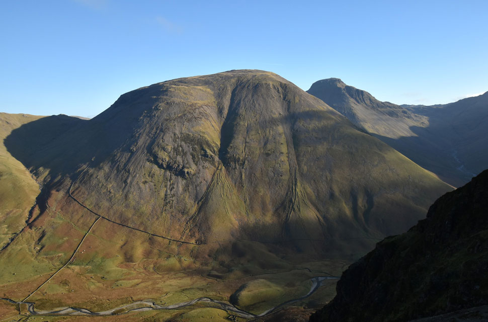 | Views over Yewbarrow towards Lingmell and the Scafells. |