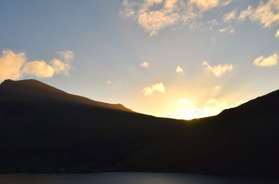 | First light over Bowderdale, Middle Fell and Seatallan. |