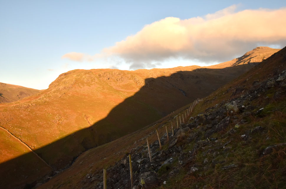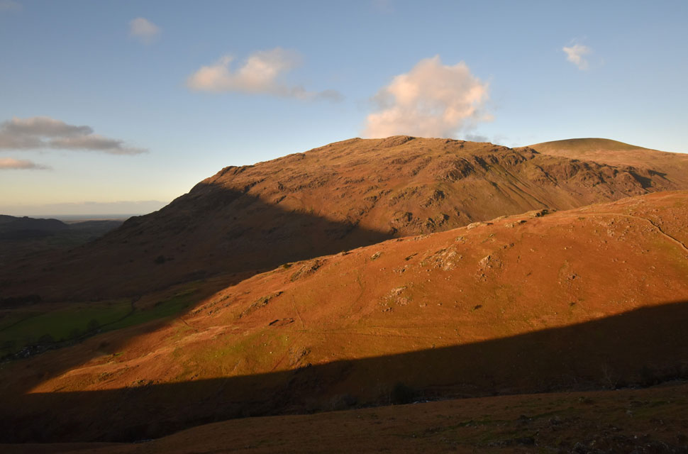 | Dawn over Stickle Pike from Crosbythwaite on the Birker Fell Road 7:09am |