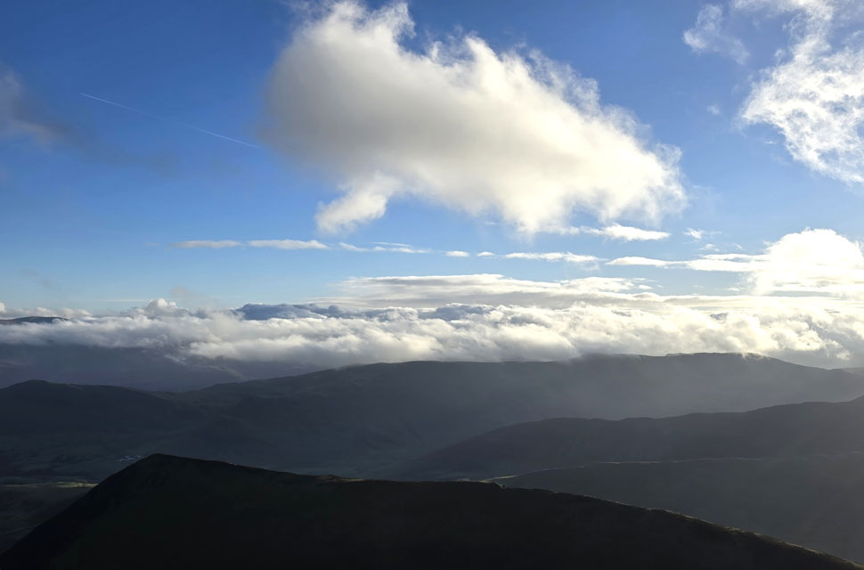 | A distant cloud topped Skiddaw and Blencathra from Sail summit. |