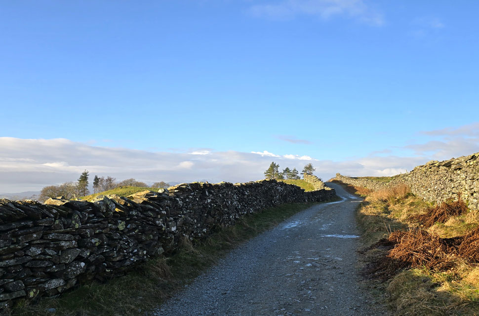 | After a hot brew and a quick bite to eat we shouldered packs and joined Robin Lane, an ancient road thought to be part of the High Street Roman road linking Troutbeck with Ambleside Roman Fort. |