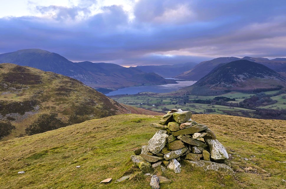 | Views towards Crummock Water and Buttermere from Darling Fell summit. |