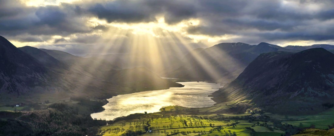 | Burst of light over Crummock Water from Loweswater Fell. |