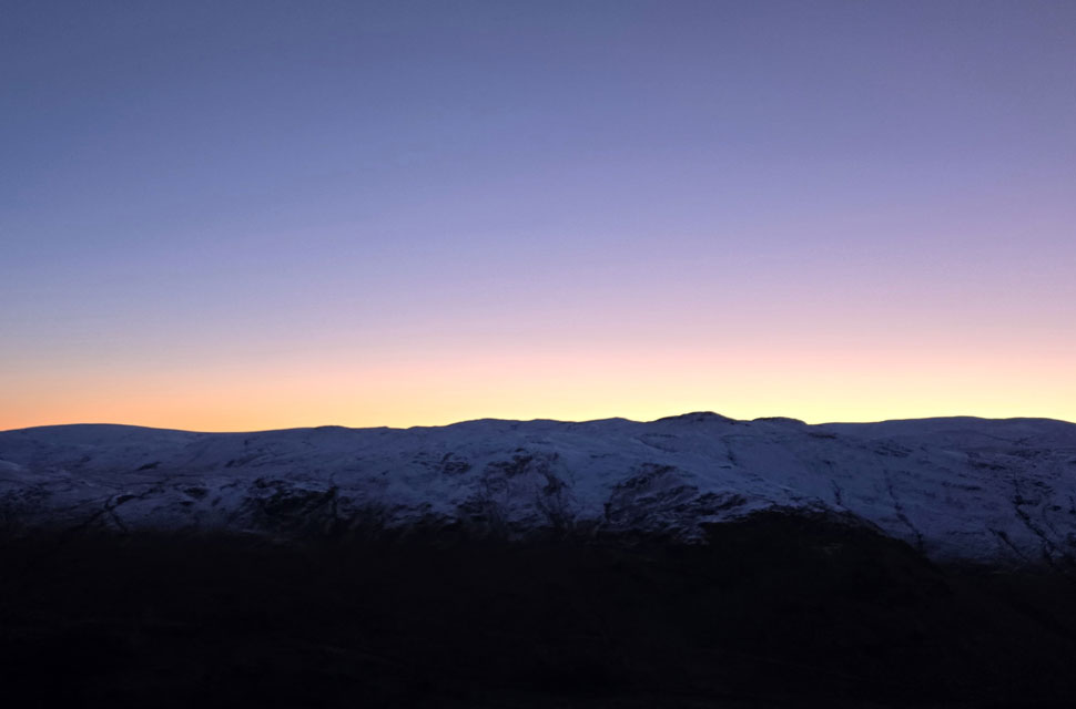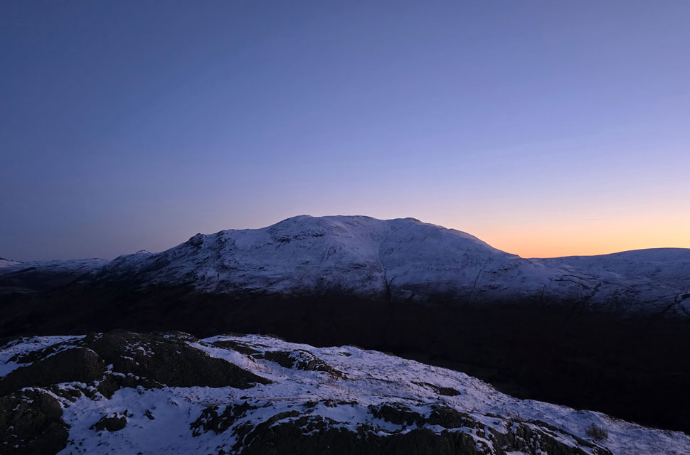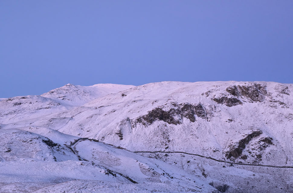 | It had been a solid three weeks since I last walked in Lakeland, a mix of bad weather and a weekend out with friends keeping me away and in that time the fells had endured day after day of low cloud and rain falling as snow over high ground. A brief rise in summit temperatures brought a short-lived thaw, only for another cold snap to sweep in, dropping fresh snow as low as 1,000 ft and down to ground level further east. Then, at last, a band of high pressure arrived for Saturday. After weeks of gloom, we were finally promised a day of winter sunshine before the window closed again. Opportunities like that are rare, and I grabbed this one with both hands. Rod would be following my route later with Michael, though it was doubtful our paths would cross. Still, I told him to keep an eye out for a bright red jacket moving somewhere across the skyline. With sunrise creeping earlier each week, my dawn walks are coming to an end, and I've drawn the line at setting my alarm any earlier than 3:00am It wouldn't have been quite so punishing had Kirkstone Pass not been closed due to a landslip forcing a detour to Penrith before dropping south to Patterdale but that's by-the-by now. I left home after defrosting the car and arrived in Patterdale under starry skies and a hard frost. It was 6:10am The plan was to set off by 6:30am so I lingered in the warmth of the car for a few minutes a decision that, in hindsight, cost me the sunrise from Birks summit, but more on that later.