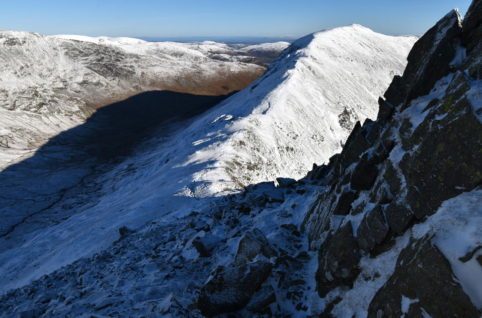 | Just like Striding Edge and Swirral Edge on Helvellyn would be; the ascent on Cofa Pike had to be treated with care, confidence and the ability to know when to turn back should the conditions turn against me. Cofa Pike was in full winter condition. |