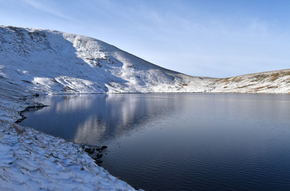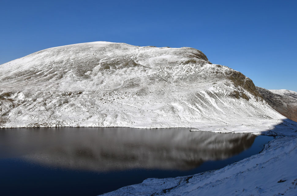 | Dollywaggon Pike reflecting in Grisedale Tarn. |