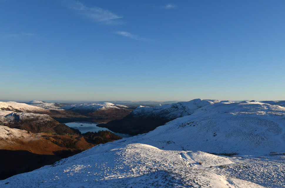 | Views over Patterdale towards Glenridding and Ullswater from the ascent of Arnison Crag -3°C 6:50am |