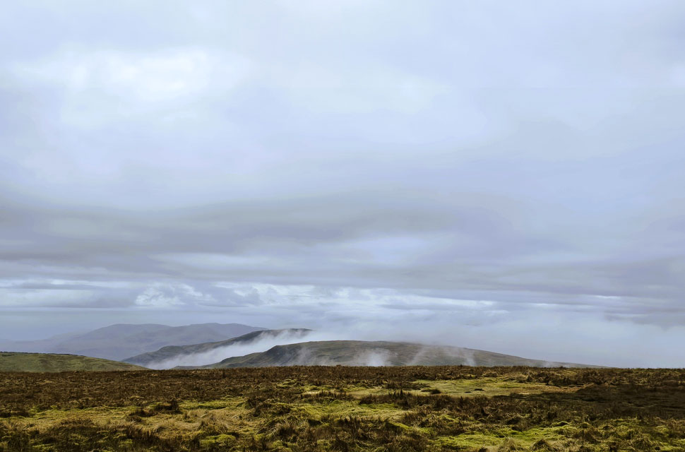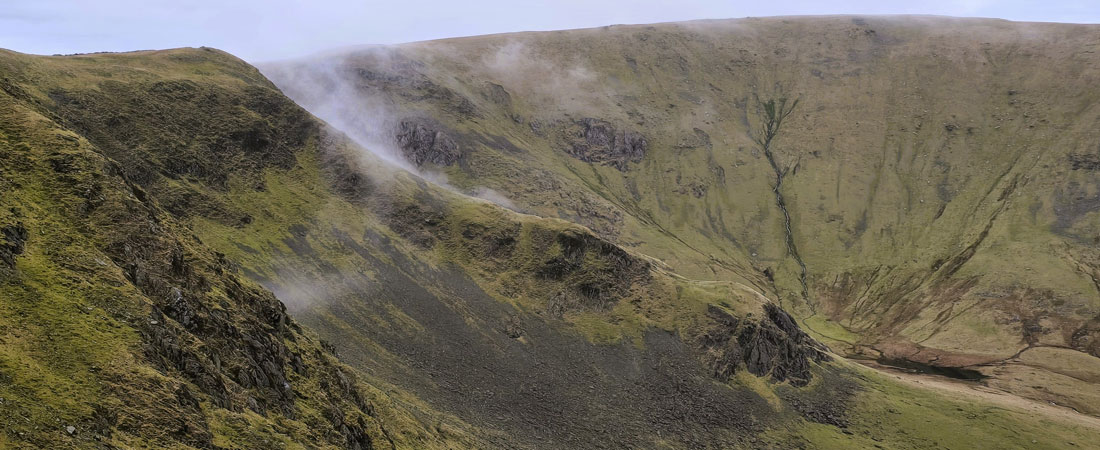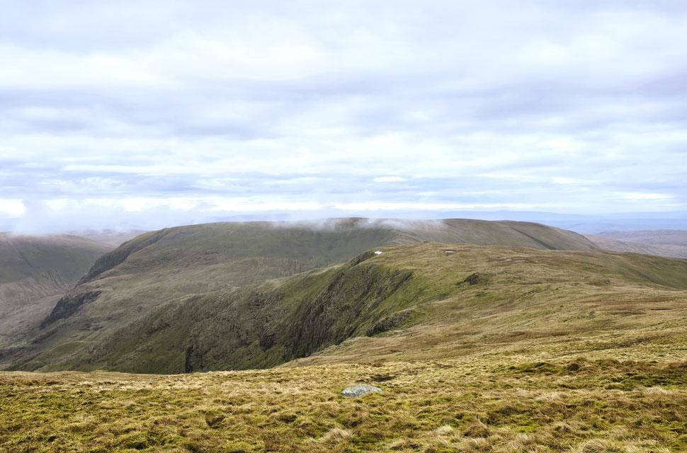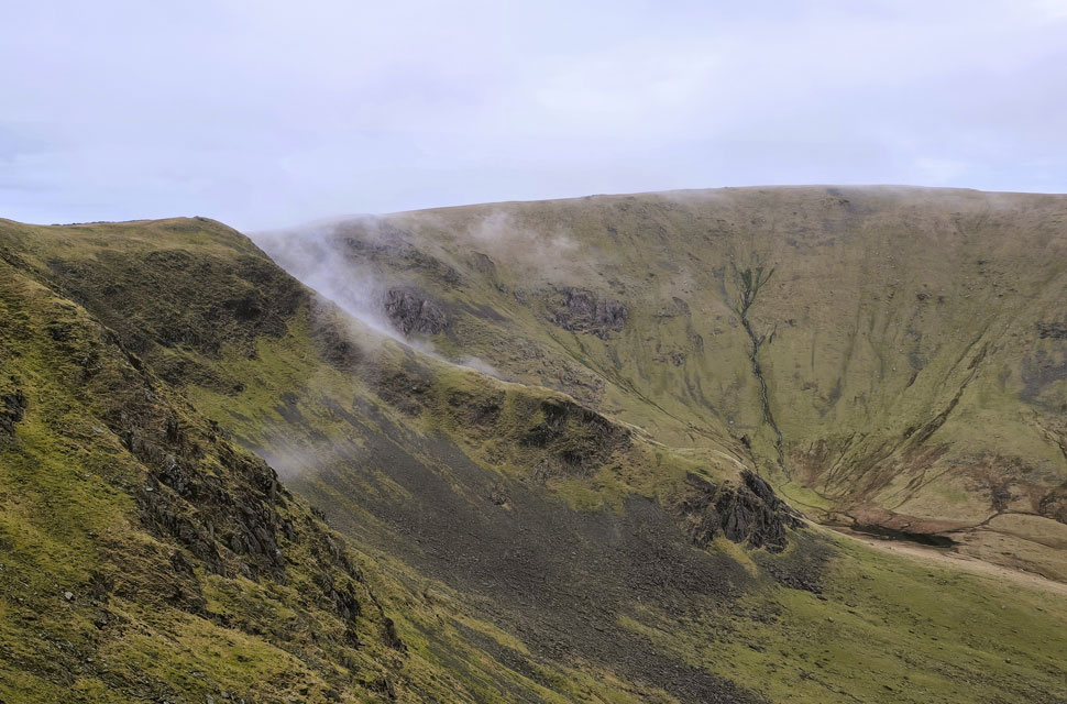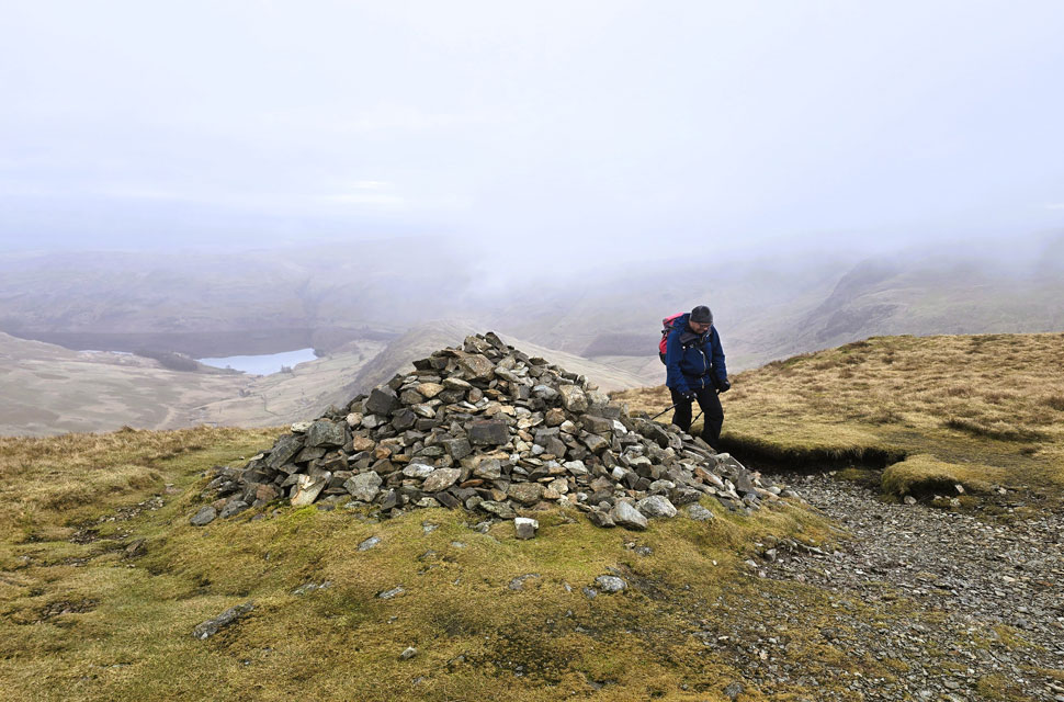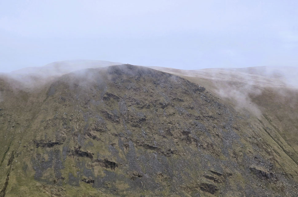 | As we climbed higher fresh banks of mist gathered over Kidsty Pike and Harter Fell in the distance too. |