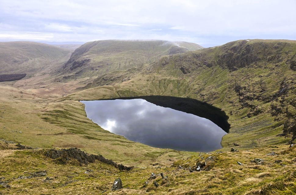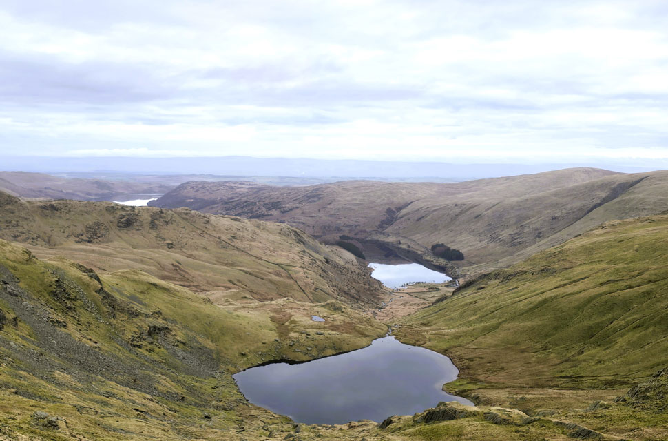 | We pushed on into the ascent and soon found ourselves standing atop Eagle Crag, pausing for a quick breather while taking in the calming views over Haweswater below. |