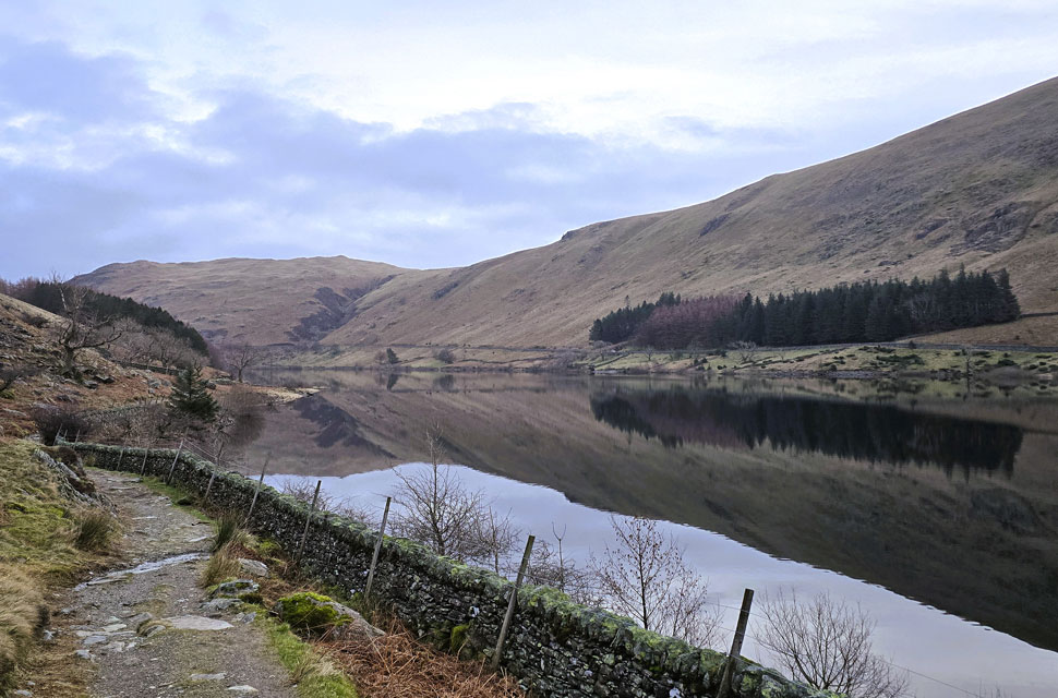 It had been a reliable forecast all week promising intermittent sunshine on Saturday so it felt right to return to Haweswater for a circuit of Mardale Head. But by Saturday morning the outlook had shifted after a band of overnight rain had left a ceiling of high grey cloud, its density drifting between shades of dullness what photographers would call flat light. It wouldn't trouble the walk, but it certainly would the camera. With David walking with Kayleigh, Rod asked if I'd mind him joining me, and of course I didn't.