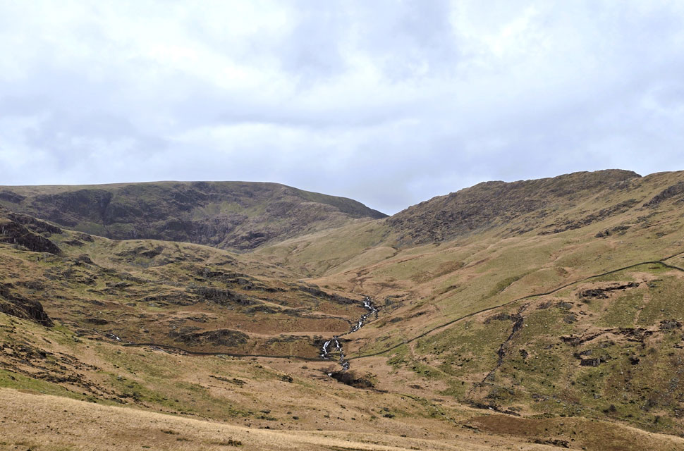 | Views towards Small Water and the top of Nan Bield Pass. |