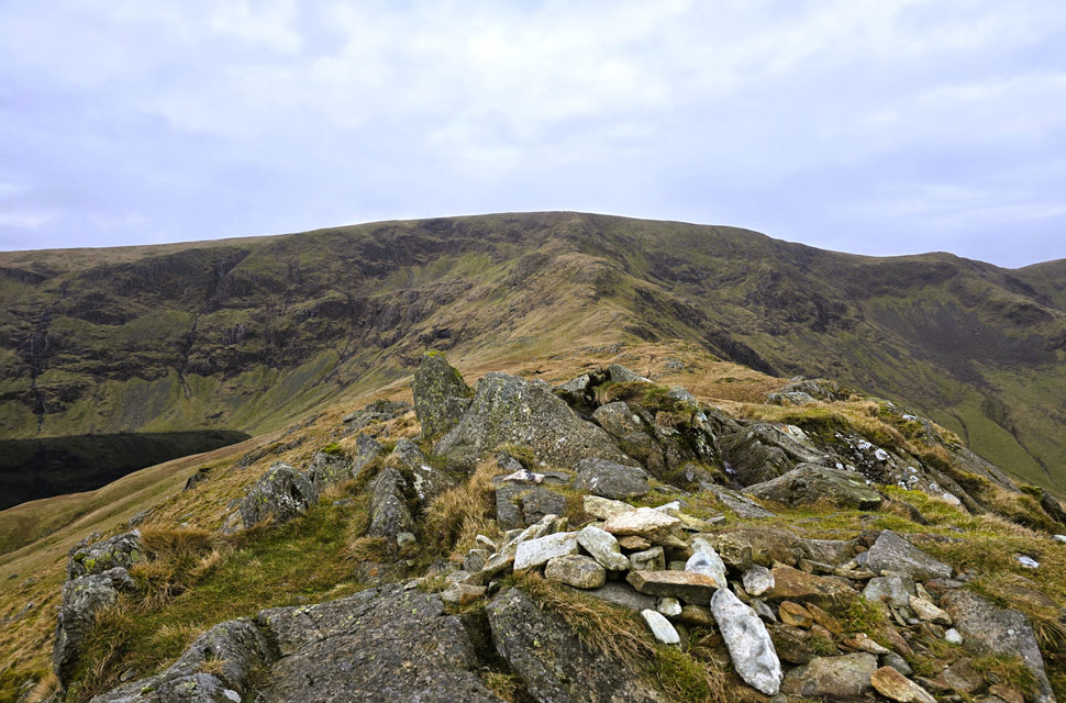 | Harter Fell (Mardale) seen beyond the top of Nan Bield Pass. |