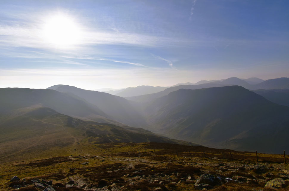 | With High Crags seen foreground and Scope End seen at the far end of the ridge. |