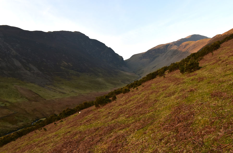 | Looking through Scope Beck towards High Crags (Newlands) and Robinson 3°C 7:05am |