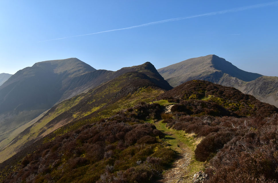 | Scope End, Knott End, High Crags (Maiden Moor) and Cat Bells. |