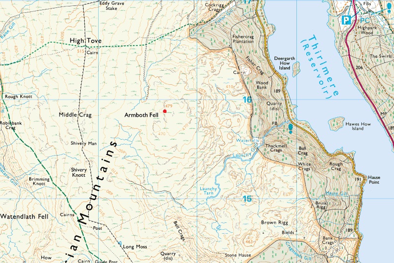 Armboth Fell has probably as a good a claim as any to be regarded as the most centrally situated fell in Lakeland, for straight lines drawn between the northern and southern boundaries, and the between the eastern and western, would bisect hereabouts.