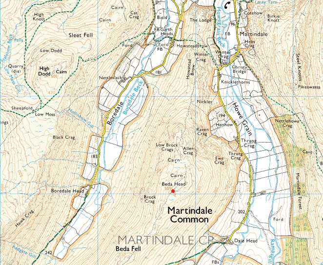 Martindale New Church - Hallin Fell - Hause Farm - Howgrain Beck (Bridge) - Boredale - Boredale Hause - Bedafell Knott - Beda Fell - Beda Head - Christy Bridge - Martindale Old Church - Martindale New Church |