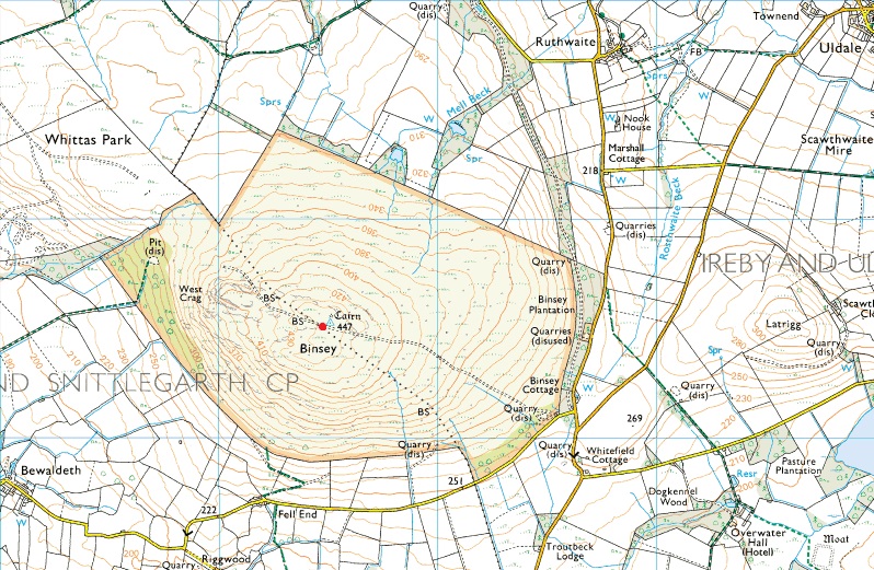 Longlands - Longlands Fell - Top of Charleton Gill - Brae Fell - Little Sca Fell - Great Sca Fell - Meal Fell - Trusmadoor - Great Cockup - Orthwaite Bank - Orthwaite - Overwater Hall - Binsey |