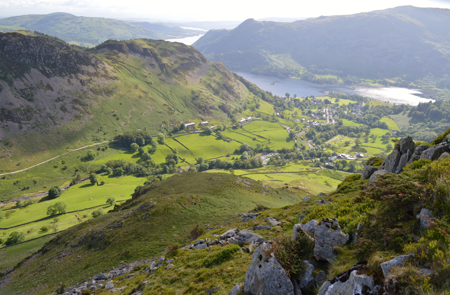 Patterdale - Glenridding - Birkhouse Moor North East Ridge - Hole-in-the-Wall - Striding Edge - Helvellyn - Swirral Edge - Catstye Cam - Swirral Edge - Helvellyn Lower Man - White Side - Raise - White Side - Helvellyn Lower Man - Helvellyn - Nethermost Pike - High Crag - Dollywagon Pike - Seat Sandal - Grisedale Tarn - Deepdale Hause - St Sunday Crag - Gavel Pike - Thornhow End - Grisedale Lane - Patterdale |