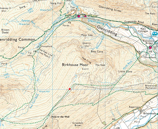 Glenridding – Blea Cove on Birkhouse Moor – Keppel Cove – Brown Cove – Catstye Cam North West Ridge – Red Tarn – Birkhouse Moor – Miresbeck - Little Cove – Glenridding |