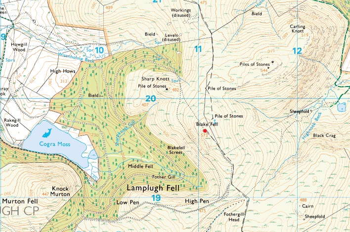 Blake Fell seen over Fothergill Head.