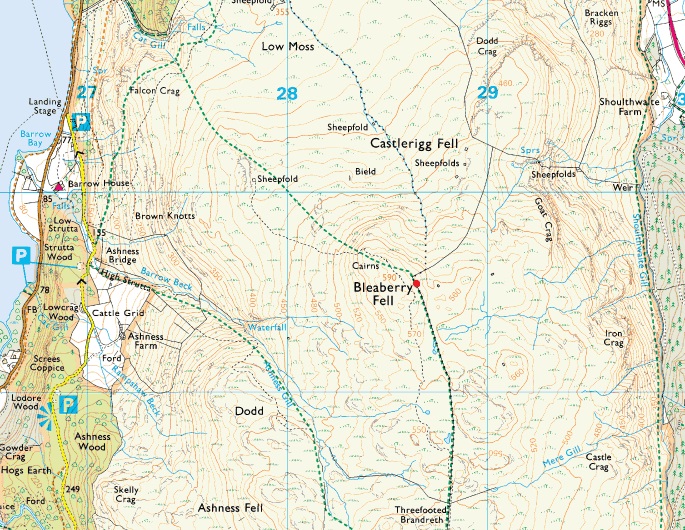 Nest Brow - Rake Foot - Walla Crag - Top of Cat Gill - Traverse Below Brown Knotts - Ashness Bridge - High Strutta - Ashness Gill - Dodd - High Seat - Threefooted Brandreth - Bleaberry Fell - Low Moss - Walla Crag - Rake Foot - Nest Brow