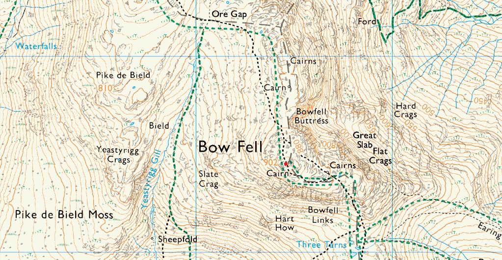Old Dungeon Ghyll – Stool End Farm – The Band – Bowfell Climbers Traverse – Great Slab – Bowfell – Three Tarns – The Band – Stool End Farm – Old Dundeon Ghyll |