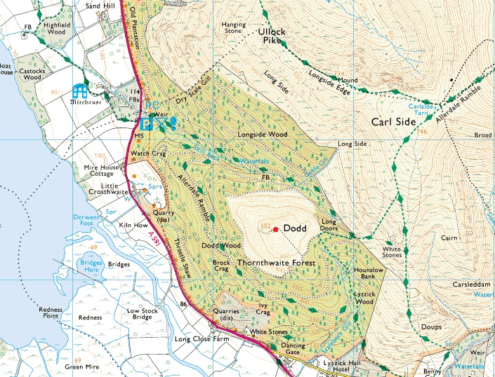Dodd, like Latrigg can be described as a whelp of Skiddaw crouched at the feet of his parent. But Dodd has latterly shown nothing of the family characteristics and the old man today must regard his off spring with surprise and growing doubt, and feel like denying his paternity and disowning the liitle wretch.