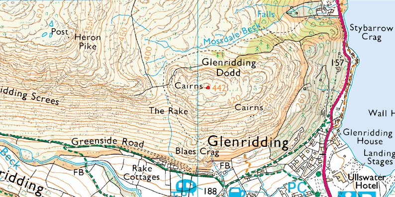 Glenridding – Glenridding Dodd – Heron Pike – Sheffield Pike – Nick Head – Glencoyne Head – Hart Side – Brown Hills – Glencoyne – A592 – Lake Path – Glenridding |