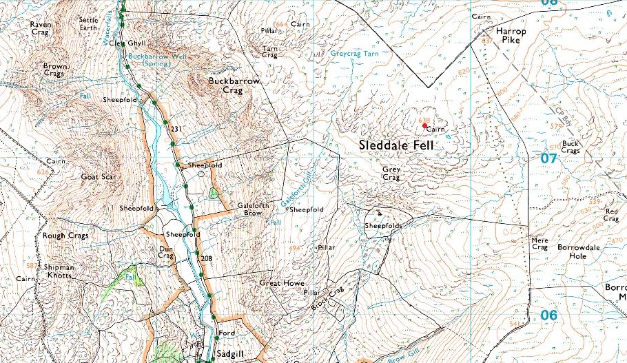 Sadgill Bridge - Longsleddale - Brownhowe Bottom - Tarn Crag (Longsleddale) - Greycrag Tarn - Harrop Pike - Grey Crag - Great Howe - Sadgill Bridge |