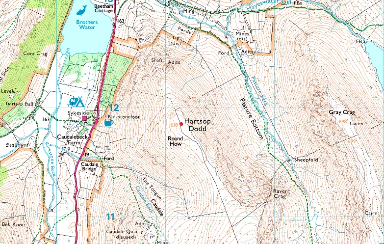 Cow Bridge – Brothers Water – Hartsop Hall – Middle Dodd – Smallthwaite Band – Red Screes – Kirkstone Pass – St Ravens Edge – John Bell’s Banner – Caudale Moor (Stony Cove Pike) – Hartsop Dodd – Hartsop – Cow Bridge |