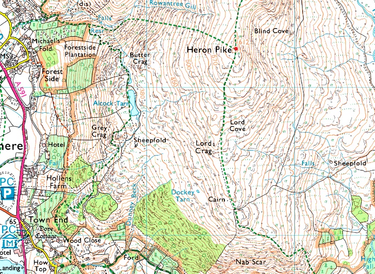 Rydal – Nab Scar – Heron Pike – Great Rigg – Stone Arthur – Greenhead Gill – Alcock Tarn – Brackenfell Woods – Rydal Coffin Route – Rydal |