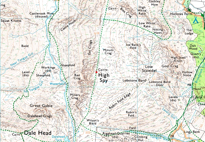 Little Town - Knott End - High Crags - Maiden Moor - Narrow Moore - Nitting Haws - High Spy - Dalehead Tarn - Dale Head - Hindscarth Edge - Littledale Edge - Robinson - Littledale Edge - Hindscarth South Top - Hindscarth - High Crags - Scope End - Low Snab - Low House Farm - Newlands Church - Little Town |