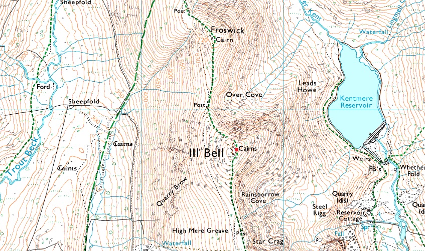 Troutbeck Church – Garburn Road – Sour Howes – Garburn Nook – Garburn Pass – Yoke – Ill Bell – Froswick – Thresthwaite Mouth – Troutbeck Tongue – Ings Lane – Truss Lane – Troutbeck Church |