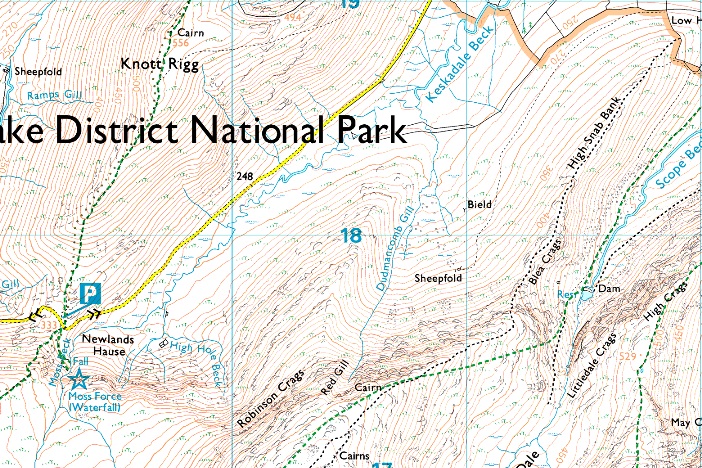 Rigg Beck – Aikin Knott – Ard Crags – Knott Rigg – Newlands Hause – High Snockrigg – Buttermere Moss – Robinson – Blea Crags – High Snab Bank – Newlands Church – Rigg Beck |