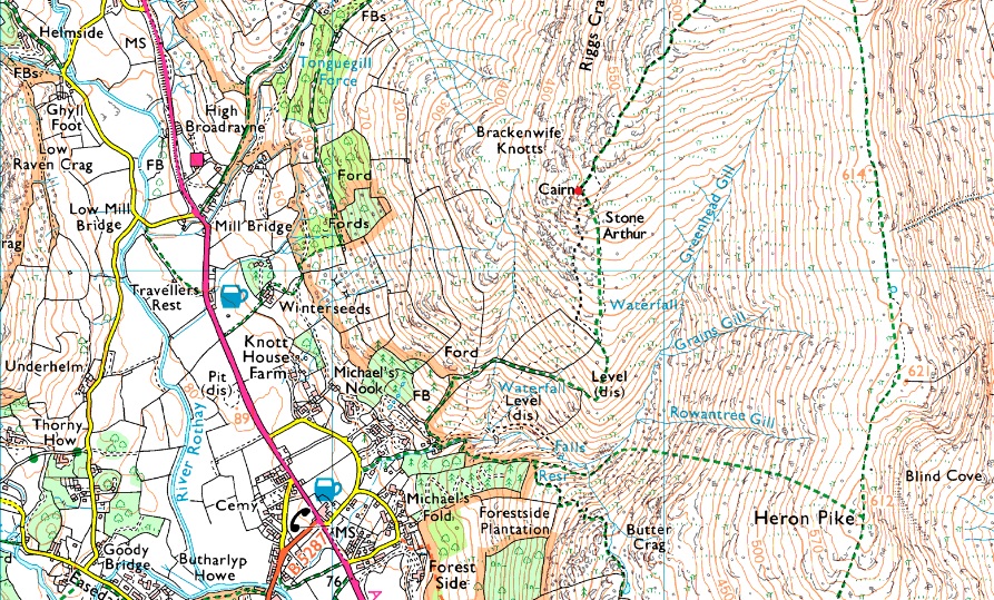 A591 - Greenhead Gill - Stone Arthur - Great Rigg - Fairfield - Hause Gap - Tongue Gill - Mill Bridge - A591 |