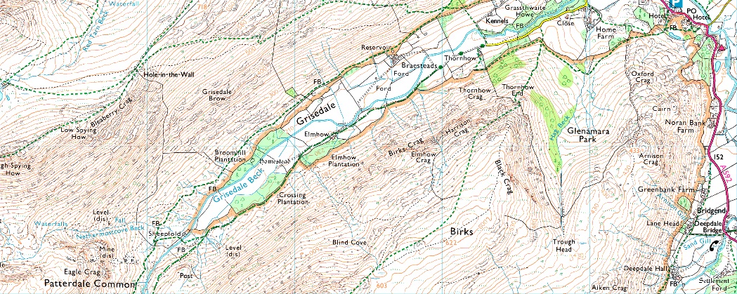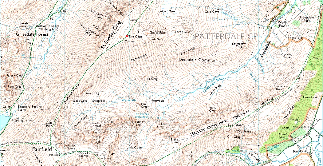 Deepdale Bridge – Wallend – Deepdale – Mossydale – Link Cove – The Step – Link Hause - Fairfield – Cofa Pike – Deepdale Hause - St Sunday Crag - Gavel Pike - Lord's Seat - Coldcove Gill - Deepdale - Deepdale Bridge |