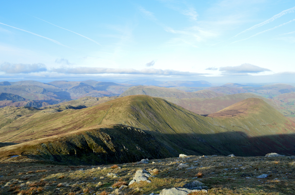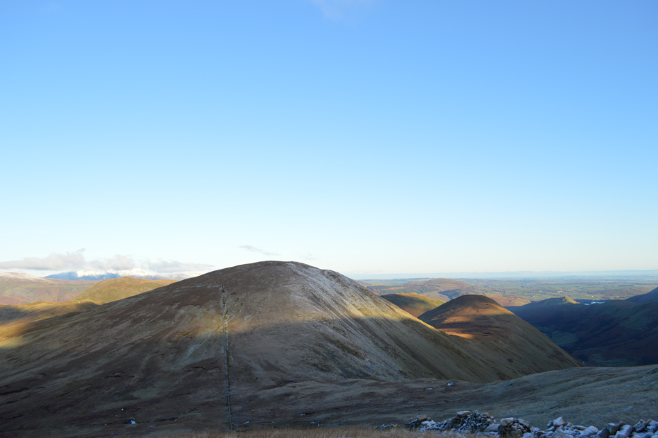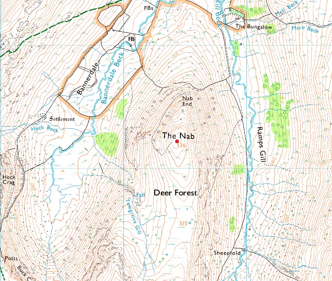 The Nab is, in chractor, akin to the three Dodds around Kirkstonefoot. Very steep-side, soaring in symmetrical lines to a slender cone, it appears from the pastures of Martindale as a lofty wedge splitting the valley into two branches, Rampsgill and Bannerdale.