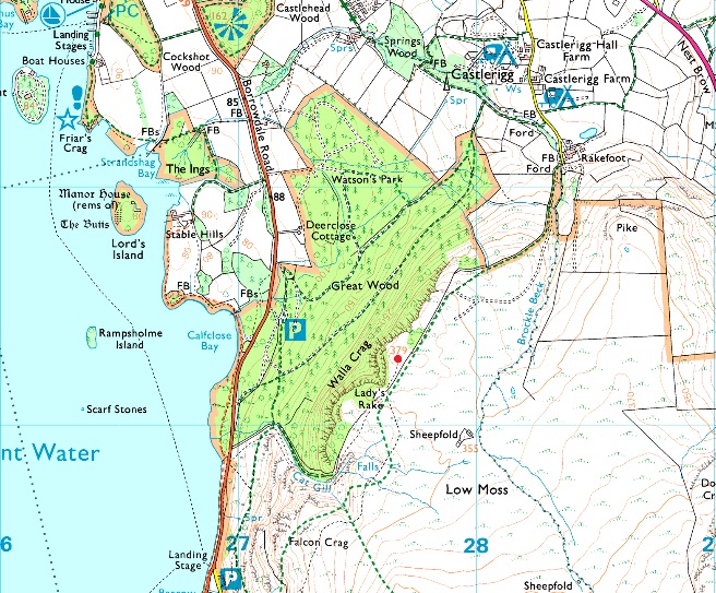 The pleasant Vale of Keswick, surely one of earths sweetest landscapes, is surrounded by mountains of noble proportions with an inner circle of lesser fells which deserve more than the name of foothills, each having strong individual characteristics, a definite and distinctive appearance, and a natural beauty all on its own. Among these is Walla Crag.