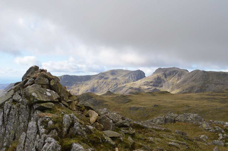 Esk Pike, Bowfell and Crinkle Crags from Cockley Beck |