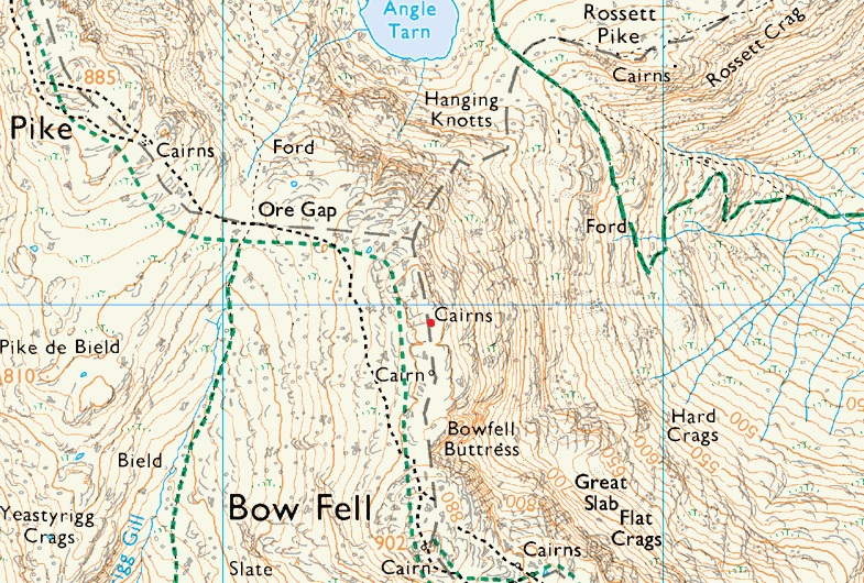 Three Shire Stone, Wrynose Pass - Red Tarn - Crinkle Crags - Shelter Crags - Three Tarns - Bowfell - Bowfell Buttress - Hanging Knotts - Bowfell - Crinkle Crags - Red Tarn - Three Shire Stone |