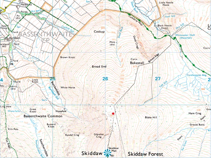 Gale Road - Latrigg - Gale Road - Applewaite - Millbeck - Lyzzick Wood - Dodd - Long Doors - White Stones - Carl Side - Long Side - Ullock Pike - Long Side - Skiddaw - Broad End - Bakestall - Skiddaw - Skiddaw Little Man - Skiddaw Lesser Man - Jenkin Hill - Lonscale Fell - Whit Beck - Gale Road
