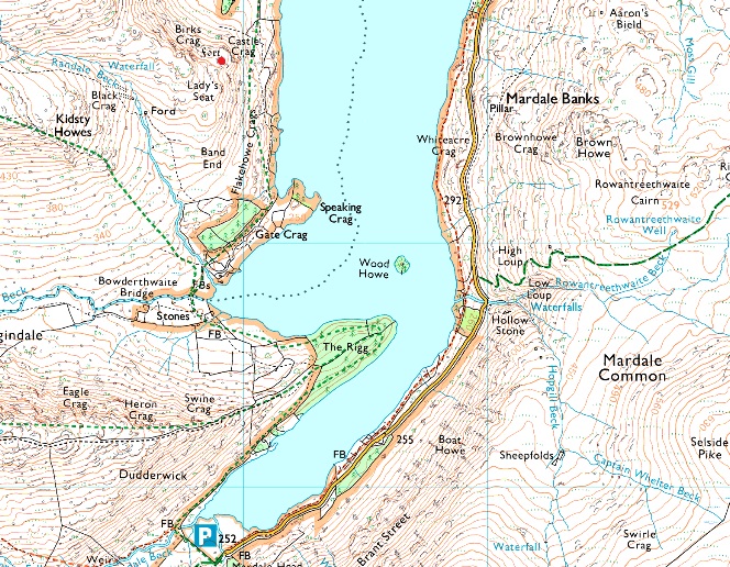 Mardale Head - The Rigg - Rough Crag - Caspel Gate - Long Stile - High Street - Straights of Riggindale - The Knott - Rampsgill Head - Kidsty Pike - High Raise (Martindale) - Low Raise - Castle Crag (Fort) - Randale Beck - Riggindale Beck - The Rigg - Mardale Head |