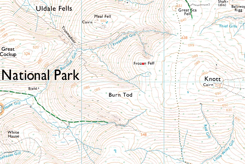 Peter House Farm - Horsemoor Hills - Orthwaite - Orthwaite Bank - Little Cockup - Great Cockup - Trusmadoor - Meal Fell - Little Sca Fell - Great Sca Fell - Knott - Frozen Fell - Burn Tod - Trusmadoor - Burntod Gill - Dash Valley - Horsemoor Hills - Orthwaite |