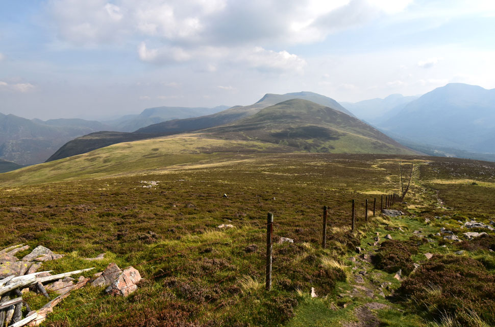 Looking back on Gale Fell (left) Starling Dodd, Red Pike (Buttermere) Blea Crag and Lingcomb Edge. |
