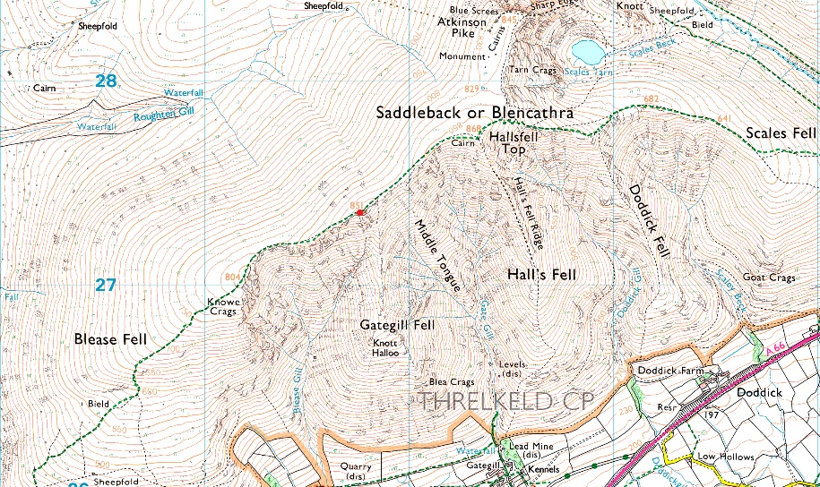Threlkeld - Gategill Farm - Hall's Fell Ridge - Hall's Fell Top (Blencathra) - Gategill Fell Top - Gategill Fell - Knott Halloo - Threlkeld
