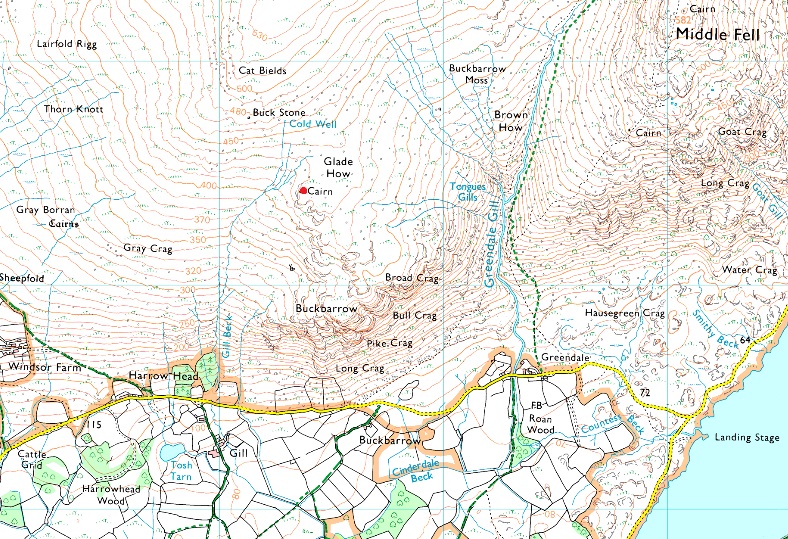 Greendale - Nether Wasdale - Harrow Head - Gill Beck - Buckbarrow - Glade How - Cat Bields - Seatallan - Middle Fell - Greendale - Nether Wasdale - Harrow Head |