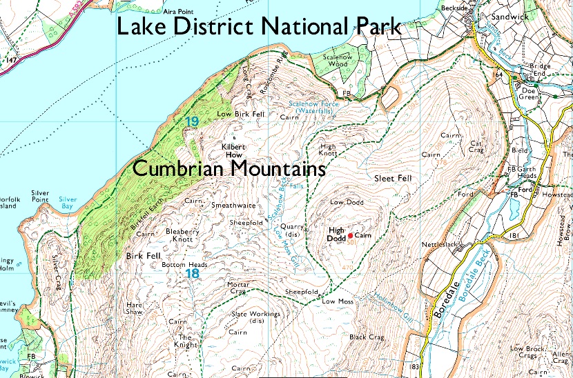 Low Birk Fell - Bleaberry Knott - The Knight - Place Fell - High Dodd - Sleet Fell |